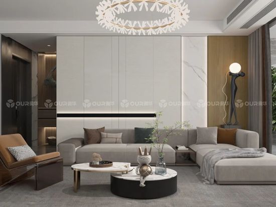 百變的空間 客廳沙發(fā)背景墻以黃栗柚為點(diǎn)睛之筆,輕輕觸摸墻體表面,能夠清晰地感受到木材的紋理,淡淡的暖色調(diào)讓整個(gè)家充滿(mǎn)溫馨。 沙發(fā)背景墻以黃栗柚格柵進(jìn)行拼接過(guò)渡,木與大理石的輝映,克制而平衡。格柵理性的直線(xiàn)在娓娓道來(lái)的節(jié)奏感中,生發(fā)出更多的靈氣,像是身處大自然之中,自由呼吸。 應(yīng)用與優(yōu)勢(shì) 奧華黃栗柚逼真還原了木材細(xì)節(jié),高顏值的同時(shí),耐磨好打理,觸感舒適不覺(jué)冰冷,且防撞、防潮、易清潔,更加適合有老人和孩子的家庭。 3000*880*10mm、2600*880*10mm兩款規(guī)格,黃金比例讓空間更加個(gè)性化、藝術(shù)化,百搭隨心。堅(jiān)實(shí)耐用的奧華黃栗柚,為環(huán)保交出一份令人滿(mǎn)意的答卷。 圖片5