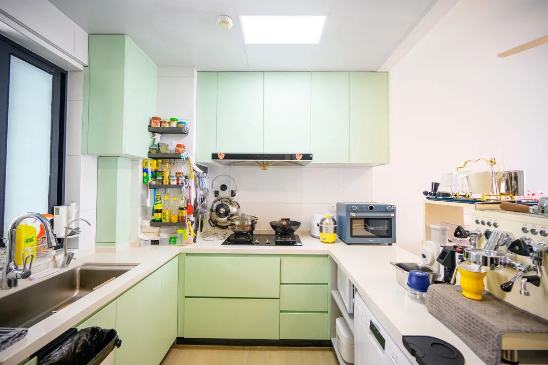 所有能掛在墻上的物品都掛在墻上,擺放整齊更方便使用廈門榻榻米裝修,讓充滿油煙味的廚房看起來更加清新干凈。