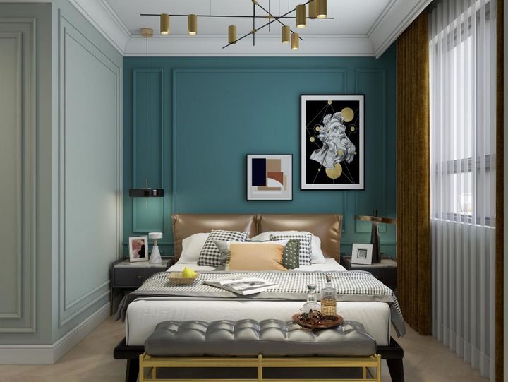 法式混搭風(fēng)的魅力就在于多了幾分品質(zhì)和設(shè)計(jì)感,透露生活本真純粹的同時(shí),又融入了奢華和內(nèi)涵的氣質(zhì)。這套案例中,臥室裝修在色彩上運(yùn)用金屬色與亮色相互碰撞,形成色彩上的對比,為居室呈現(xiàn)出一種溫馨大氣、時(shí)尚浪漫的格局。
