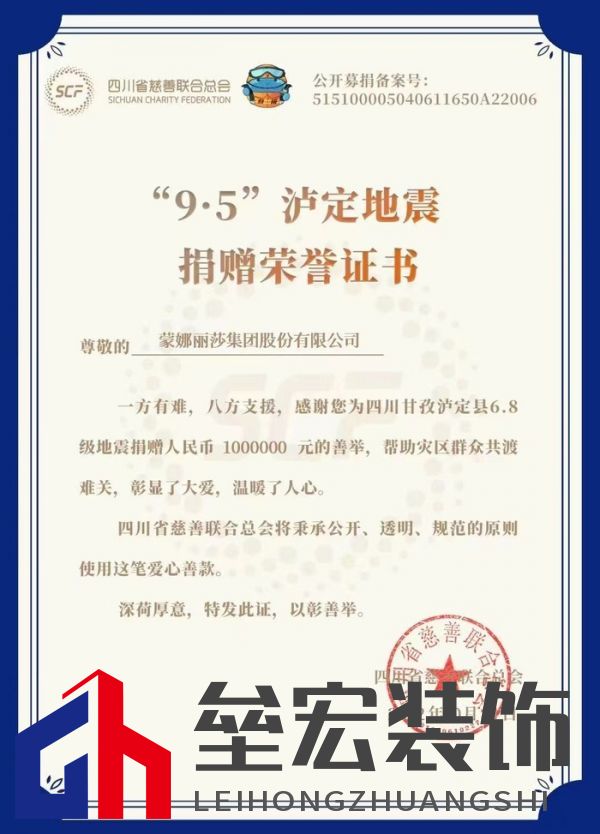 快訊|蒙娜麗莎集團(tuán)向四川甘孜瀘定縣6.8級(jí)地震災(zāi)區(qū)捐贈(zèng)1000000元善款