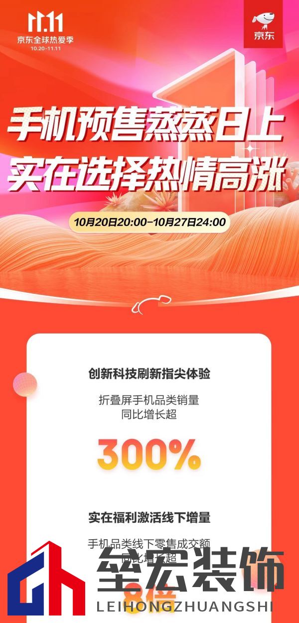 ??近年來,相比于全面屏手機不斷演進,折疊屏手機的問世,改變了智能手機的形態(tài),成為手機研發(fā)行業(yè)極具標志性的創(chuàng)新。折疊屏的迭代換新也成為當(dāng)代消費者追求時尚潮流的新方向,折疊屏手機品類銷量尤其亮眼。京東11.11預(yù)售期間,折疊屏手機品類銷量同比增長超300%!足可見廣大用戶在京東盡情享受新鮮好物,感受科技煥新的魅力之處。 ??不僅產(chǎn)品方面增勢喜人,在京東11.11實實在在的福利加持下,全渠道購機也成為用戶購機換新的熱選方式之一。預(yù)售數(shù)據(jù)顯示:手機品類線下零售成交額同比增長超8倍!京東正在為用戶持續(xù)帶來沉浸式的線下購機體驗,以品質(zhì)新機+服務(wù)更進一步觸達用戶,為各品牌手機品類線下銷售創(chuàng)造新活力。