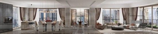 ??客廳和餐廳相互連通,三面大落地窗使內(nèi)部空間顯得更加通透。四周的環(huán)繞式露臺讓室內(nèi)外景色渾然一體;躺在陽臺的椅子上,坐城觀海,縱觀都市繁華的麗景,享受海風(fēng)帶來的愜意。
