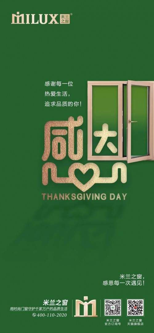 | ??知恩于心,感恩于行。感恩予我生活甘甜,伴我風(fēng)里雨里的你。致謝感恩節(jié),讓我們能在氣溫漸寒的冬日中向生命中重要的人道聲感謝。美好生活,用心感恩,用一樘高品質(zhì)門窗讓家升溫,開啟美好家居生活,用愛溫暖彼此。
