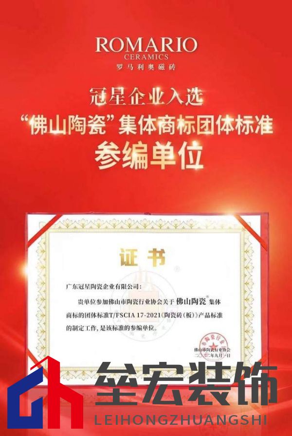 ??作為佛山本土最具代表性的品牌之一,羅馬利奧榮耀上榜,成為“佛山陶瓷”集體商標授權(quán)品牌之一,收獲權(quán)威機構(gòu)認證,彰顯品牌硬核實力。與此同時,冠星企業(yè)入選“佛山陶瓷”集體商標團體標準參編單位,奠定企業(yè)在行業(yè)中的領(lǐng)軍地位!