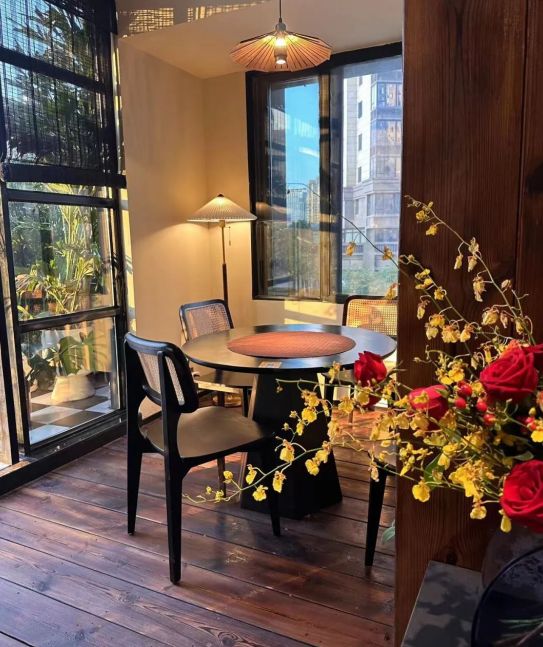 “多元的個性,讓他的設(shè)計呈現(xiàn)豐富精彩” 在孫老師的店里,令人感覺很輕松,很平靜,沒有刻意強(qiáng)調(diào),細(xì)節(jié)卻無處不在,他說,店里的每一幅話都是自己畫的,每個裝飾也是自己淘的,店里每天的鮮花也是不一樣的……點點滴滴的溫度,軟化建筑的鋒與棱。被弱化的充滿現(xiàn)代化的功能設(shè)計,取而代之而是用親密的物件,建立與人生活的聯(lián)系,來這里就像是歸家,餐桌的座位,陽臺都是溫馨的感覺。