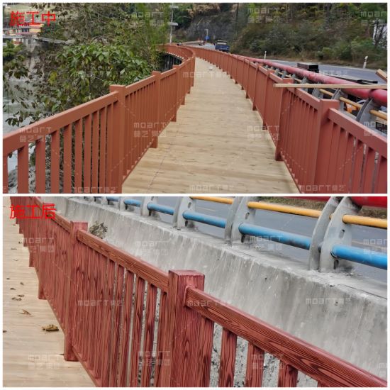 仿木紋漆施工|云南怒江福貢縣石月亮廣場護欄木紋漆效果展示