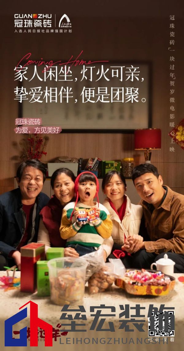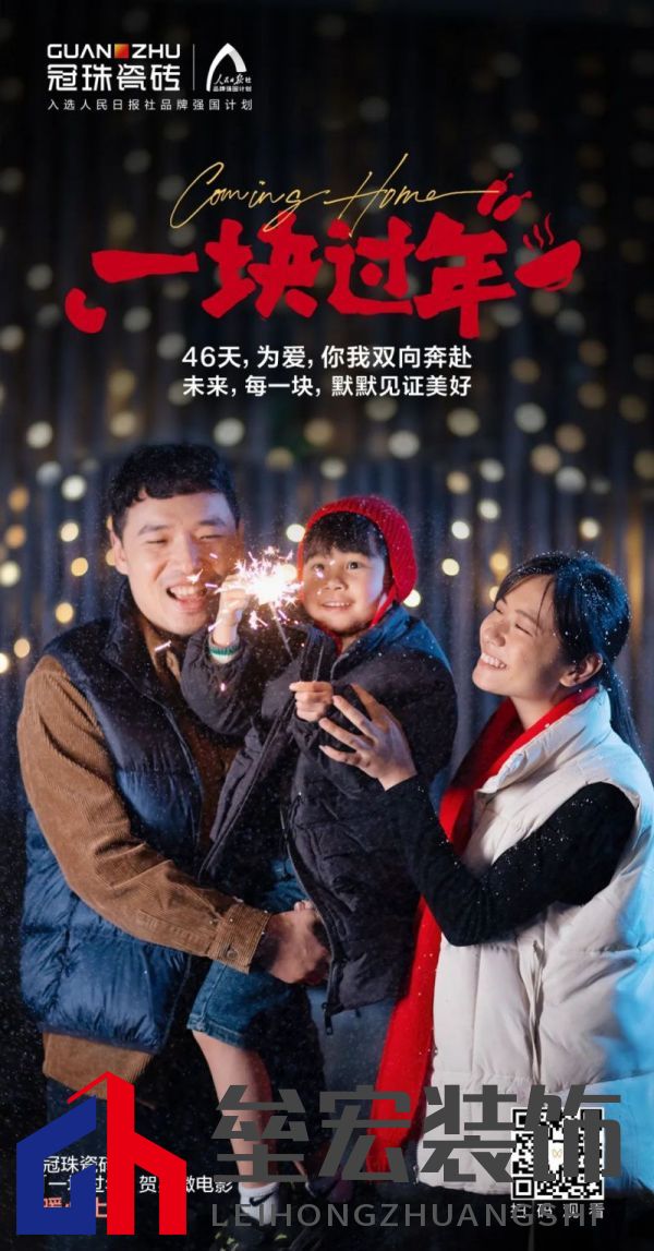 ??我們都說來日方長(zhǎng),實(shí)際上每一次的相聚,都是過期不候的一期一會(huì)!每一個(gè)新家、每一個(gè)年、每一頓團(tuán)年飯、每一次的全家福,都值得我們?nèi)σ愿?,向摯愛奔赴?/p> ??冠珠瓷磚謹(jǐn)以《一塊過年》賀歲微電影獻(xiàn)禮廣大家庭,為美好生活提供更優(yōu)的人居方案,也祝愿大家:摯愛相伴、一塊過年、闔家幸福! |