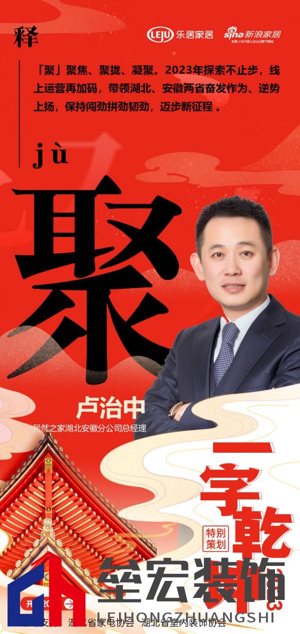 在新浪家居“2023一字乾坤”活動(dòng)中,居然之家湖北安徽分公司總經(jīng)理盧治中:「聚」聚焦、聚攏、凝聚。2023年探索不止步,線上運(yùn)營再加碼,帶領(lǐng)湖北、安徽兩省奮發(fā)作為、逆勢上揚(yáng),保持闖勁拼勁韌勁,邁步新征程 。 “以漢字賦能湖北家居企業(yè),彰顯厚積薄發(fā)之力”,以單字抒寫了各家企業(yè)及媒體的新年愿景與發(fā)展信條,領(lǐng)略楚風(fēng)漢韻下湖北家居人砥礪向前,揚(yáng)帆未來的決心與動(dòng)力,情暖兔歲,新啟華章。 |