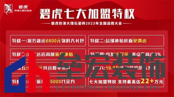 7大特權(quán) 財(cái)富升級 本次直播,碧虎大理石瓷磚總經(jīng)理高玉秀作為政策官,為在線觀眾重磅推出限時(shí)加盟特權(quán),在銷售幫扶支持、專業(yè)培訓(xùn)支持、廣告宣傳支持、終端建店支持、生產(chǎn)供貨支持、招商政策支持等【6大幫扶】的基礎(chǔ)上,直播期間報(bào)名還可尊享7大加盟特權(quán)。