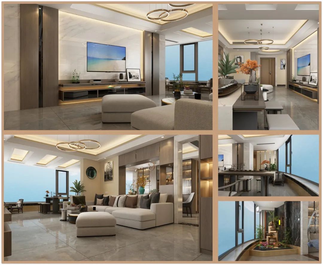 4、將客廳和觀景陽臺合為一體,并增設泡茶接待區(qū)。