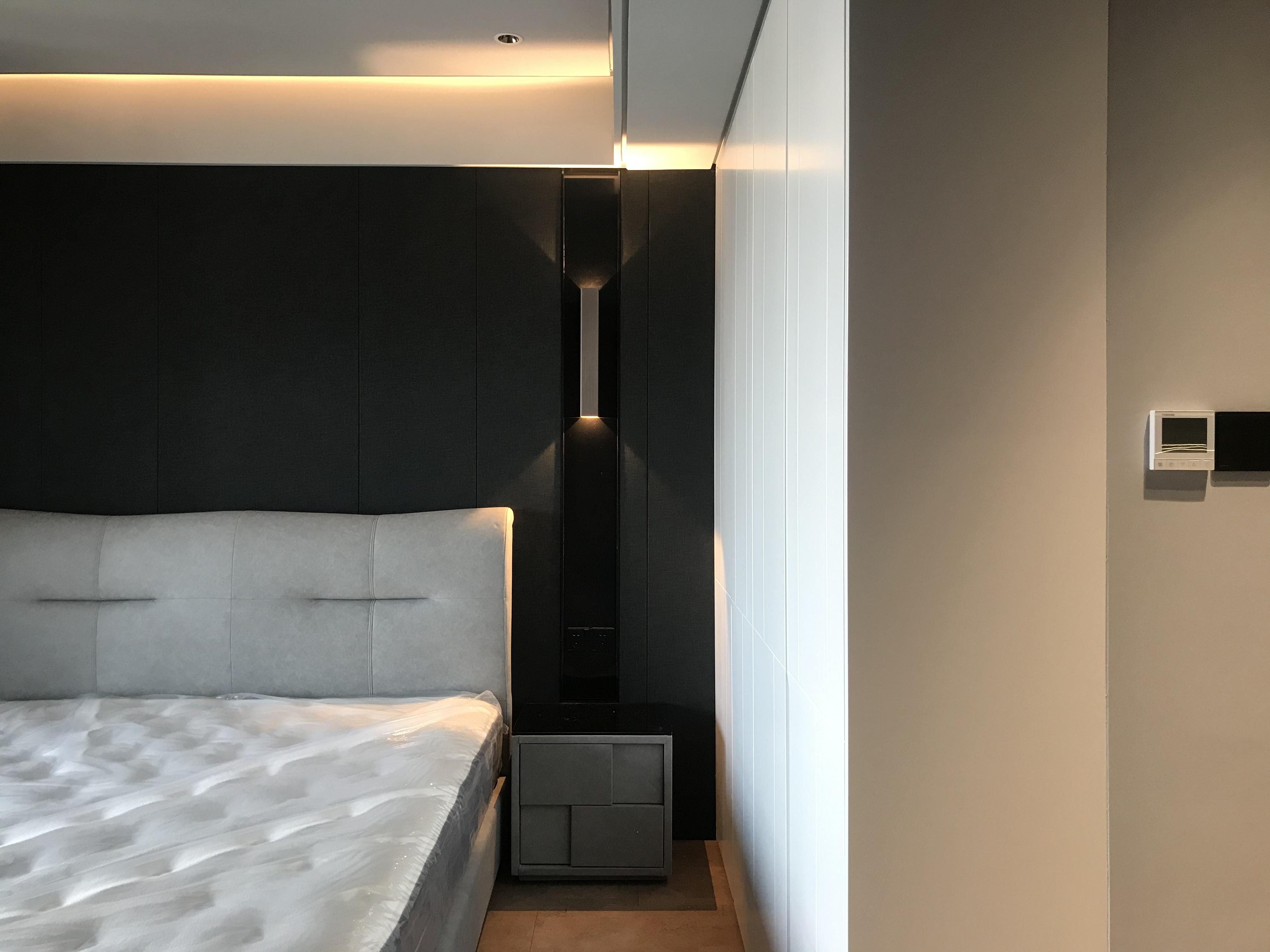 黑色的床頭背景區(qū),盡享寧?kù)o與安寧。 簡(jiǎn)約的雙人床和無主燈的設(shè)計(jì)……打造出舒適的現(xiàn)代簡(jiǎn)約風(fēng)格臥室。