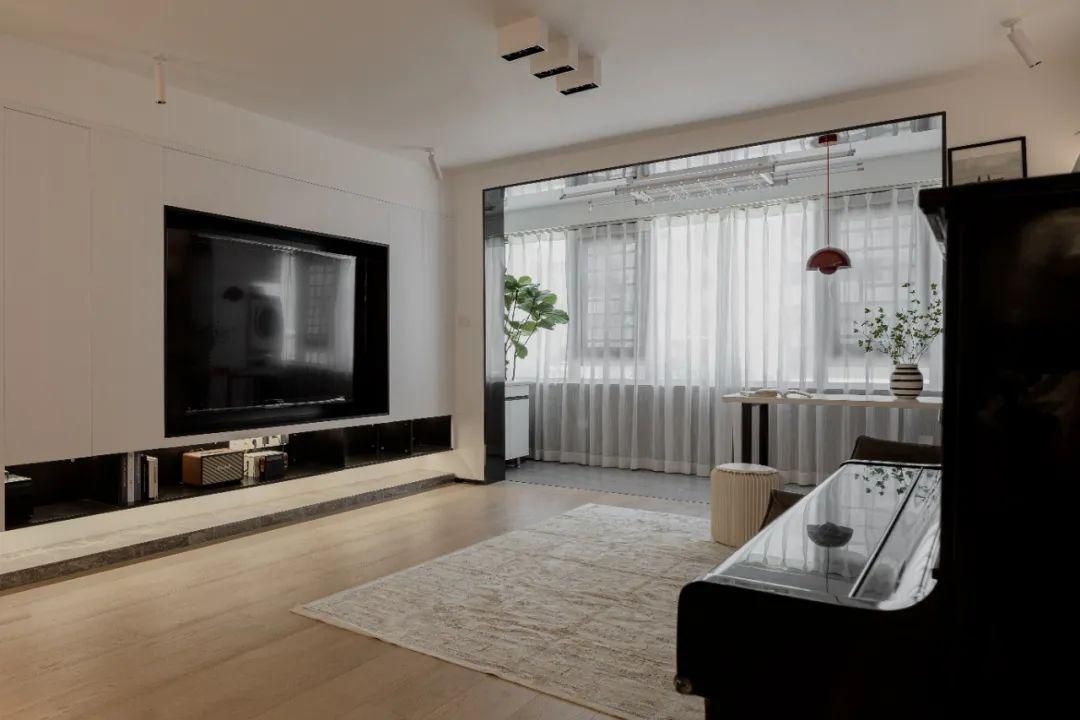同時,為了讓陽光更好地照射進客廳,設計師拆除了陽臺與客廳之間的推拉門,讓視野更開闊、更通透、更明亮。